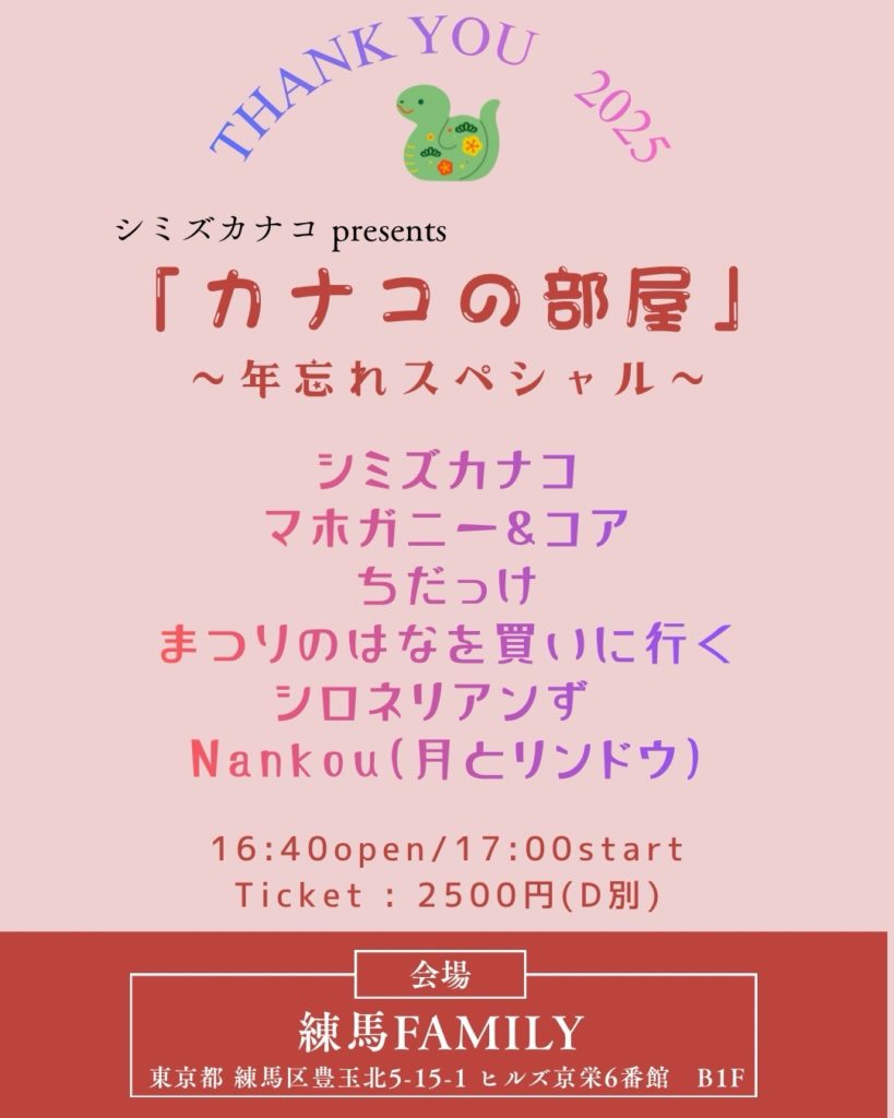 出演:シミズカナコ/マホガニー&コア/シロネリアンず/まつりのはなを買いに行く/ちだっけ/Nankou(月とリンドウ)